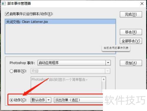 3、 选择脚本事件管理器,将启用事件以运行脚本/动作勾选。