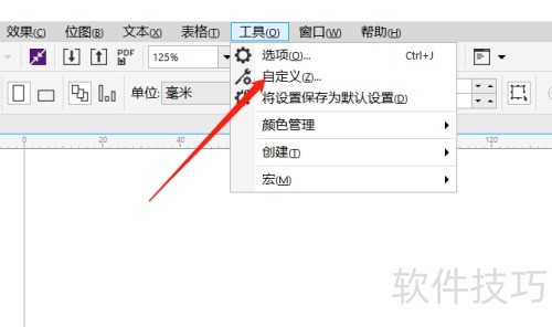 1、 单击菜单栏中的工具,然后在下拉菜单中选择自定义。