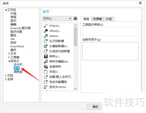 6、 单击菜单栏中的工具,在下拉菜单里选择自定义,再点击命令选项。