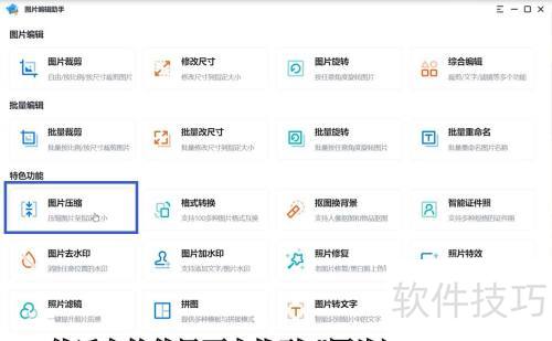 2、 接着,在软件界面里找到并点击图片压缩选项。