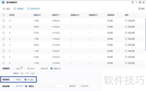 7、 在输出目录中选择压缩后图片的保存位置。