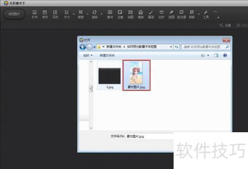 2、 第一步:在光影魔术手菜单栏里,点击打开。
