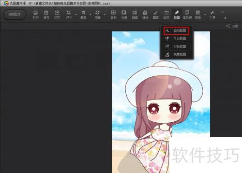 4、 第三步:菜单栏选择抠图—自动抠图,若背景复杂,通常改用手动抠图处理。