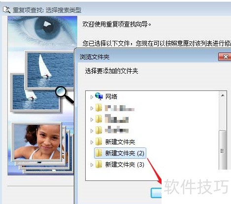 4、 我们选中需要去重的文件或者文件夹后点击确定就行,这儿小编选择添加文件夹,这种情况使用得比较多。