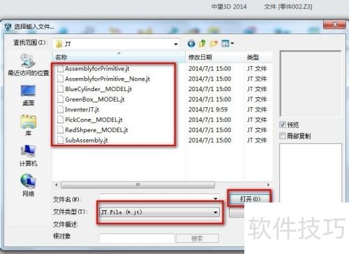 1、 中望3D2014 SP版快速输入JT格式的方法: