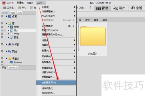 2、 先打开acdsee软件,点击菜单栏的工具,再选择查找重复项功能进行操作。