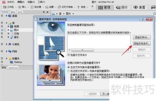 3、 在acdsee重复项查找功能里,可添加文件或文件夹,建议勾选包括子文件夹选项。