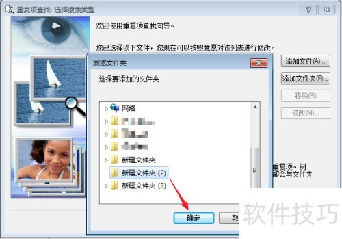 4、 选择要去重的文件或文件夹,点击确定即可。此处小编常用添加文件夹功能,适用场景较多。