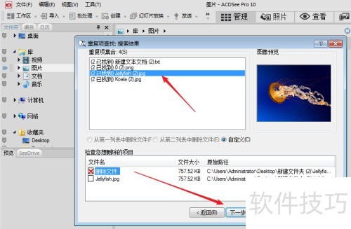 7、 acdsee去重很快完成,选择重复项合集,下方挑选要删除的文件,最后点击下一步操作即可。