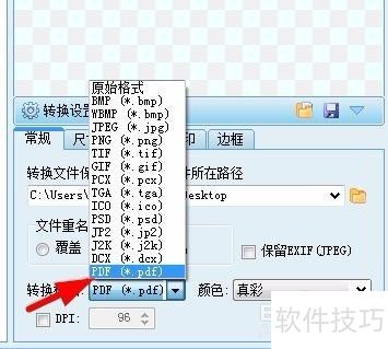 5、 点击转换格式选项的倒三角以修改转换格式。