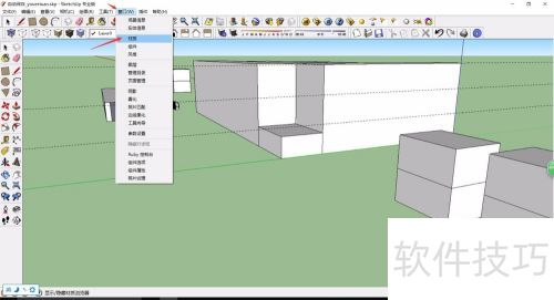 3、 要填充材质,先打开材质窗口,点击SketchUp菜单栏中的窗口选项,然后选择材质以进入相应页面。