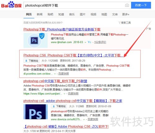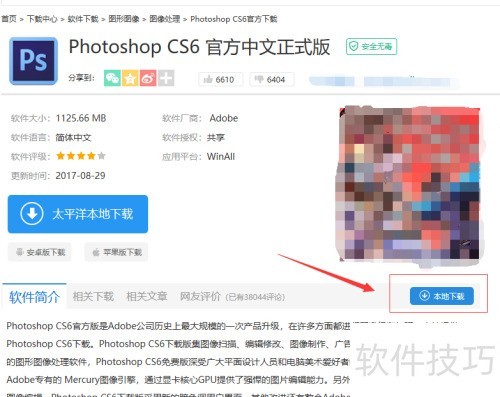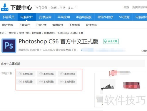1、 打开网络,搜索Photoshop CS6软件下载。找到后选本地下载,再依据网速确定下载渠道,可参照图。