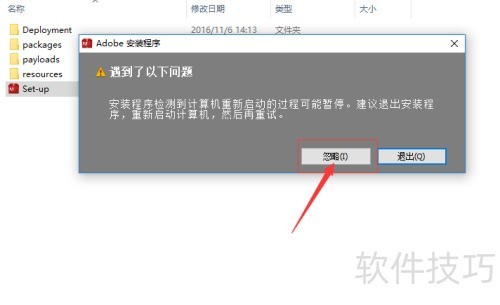 2、 下载完毕后,于下载的文件夹中找出安装程序来安装。在弹出的对话框里按忽略按钮,进入初始化安装程序,选择试用,再点击接受,之后需登录ID,没有的话直接注册一个就行。