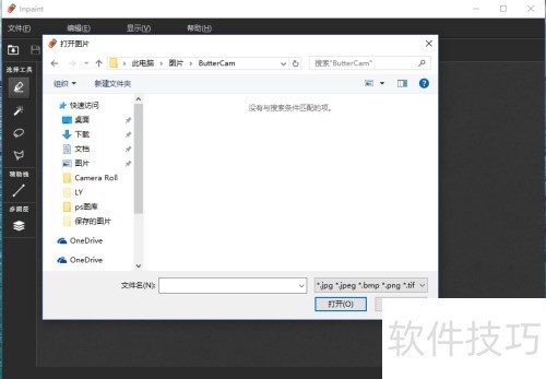 1、 打开Inpaint软件,点击左上角文件,从下拉菜单选择打开选项。