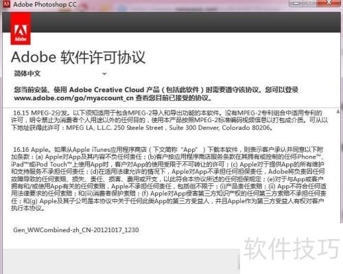 5、 点击下一步,同意软件使用条款,将之前用Photoshop CC注册机生成的注册码复制到首个输入框中,后续内容会自动填充完成,无需手动填写其他部分。