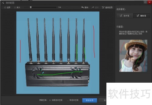 6、 用绿色选中笔选中所需部分,再以红色删除笔选择不需要的区域,如此便很智能地选定自己想要留存的内容。