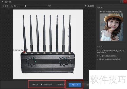 3、 第三步是手动抠图,和PS抠图工具类似,得用画笔勾线来框定要抠的具象内容。