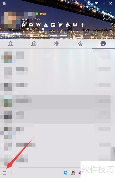2、 在QQ主面板左下角点击,会看到一个菜单,所示。