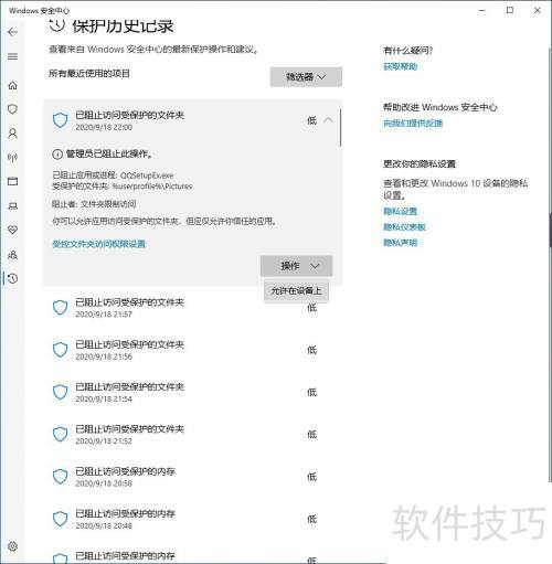 3、 定位到相关QQ拦截记录,点击操作选项,选择允许通过。