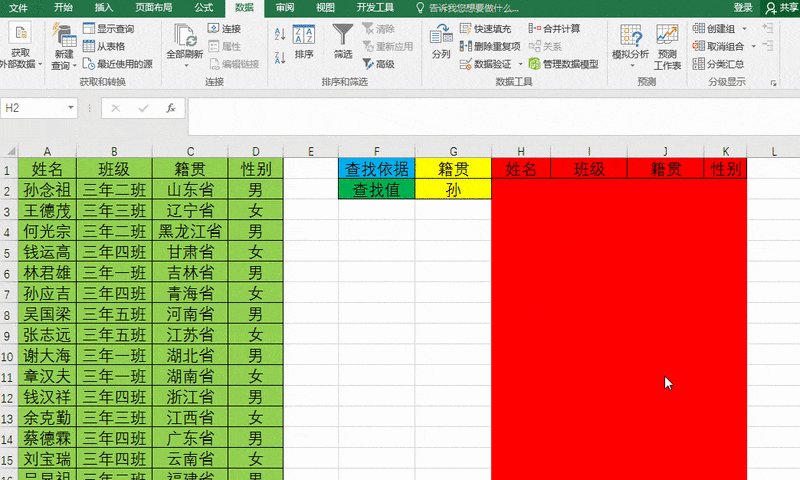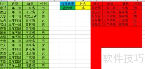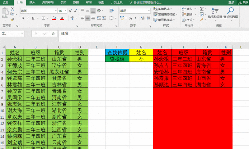 查找内容支持简写,如选择姓名为查找依据时,输入孙即可查询所有姓孙的学生信息。