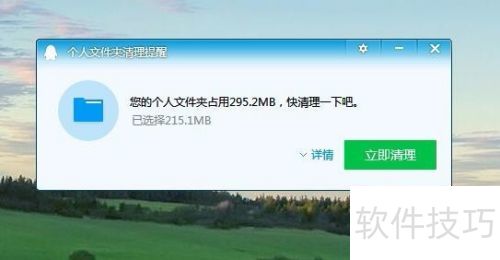 1、 使用QQ时,偶尔会出现个人文件夹清理提醒的提示信息。