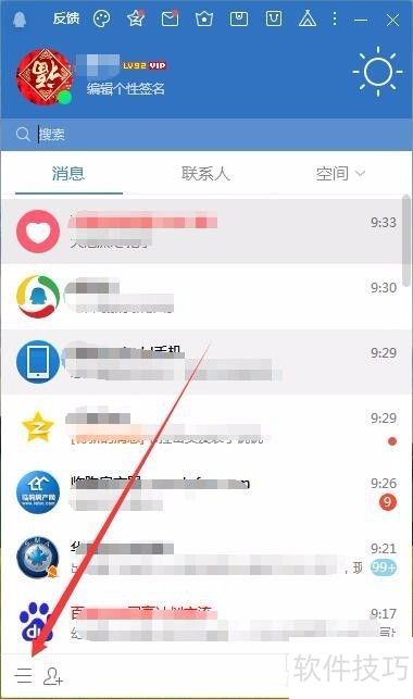 3、 另外,可在QQ主界面左下角点击菜单按钮。