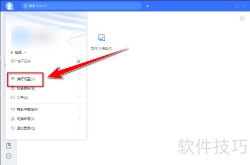 2、 从下拉菜单里选择偏好设置。