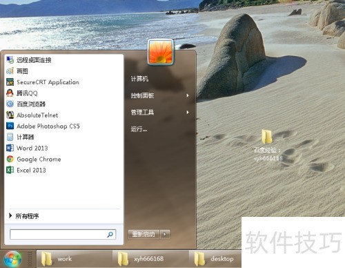 1、 小编的电脑系统开始菜单中缺少个人文件夹选项,这是以用户名命名的文件夹。接下来,小编将介绍如何将其添加到开始菜单中。