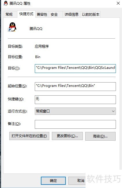 1、 首先,右键点击QQ,选择属性,查看其所在目录。