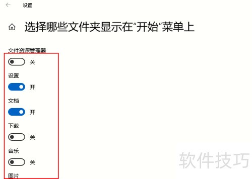 4、 单击选择哪些文件夹显示在开始菜单中。
