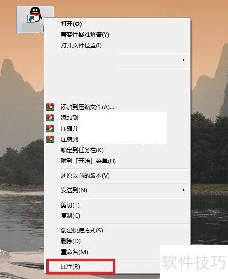 2、 右键点击桌面QQ图标,选择属性。