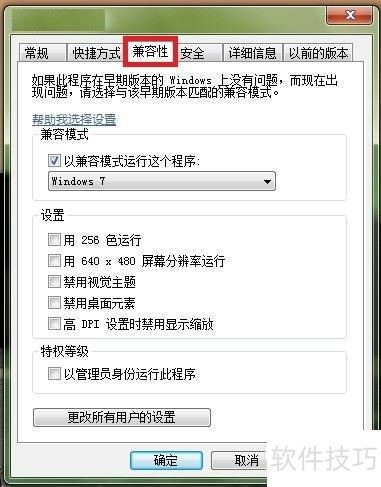 3、 在打开的属性对话框里,点击兼容性选项。