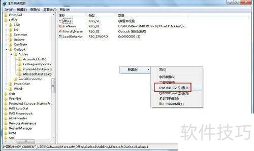 5、 在右侧详细窗口,右键鼠标,选择新建,再从子菜单中选取DWORD(32位)值。