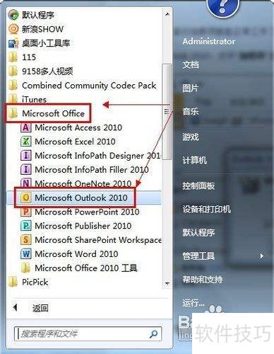 8、 完成上述操作后,便可以实现Outlook个人文件夹(.pst)的自动备份功能。若需进行更多设置,请启动Outlook 2010:点击开始菜单,选择所有程序,依次打开Microsoft Office文件夹,然后点击Microsoft Outlook 2010启动程序。