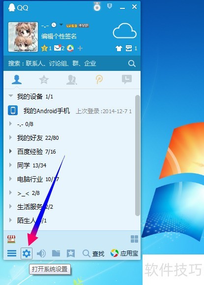 2、 在QQ主界面,点击下方的系统设置选项。