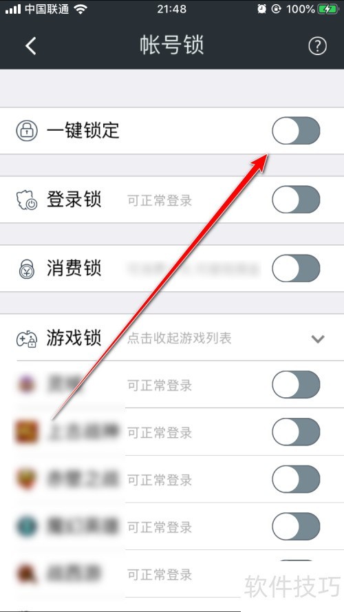 3、 一键锁定位于第一行,点击右侧按钮即可开启。