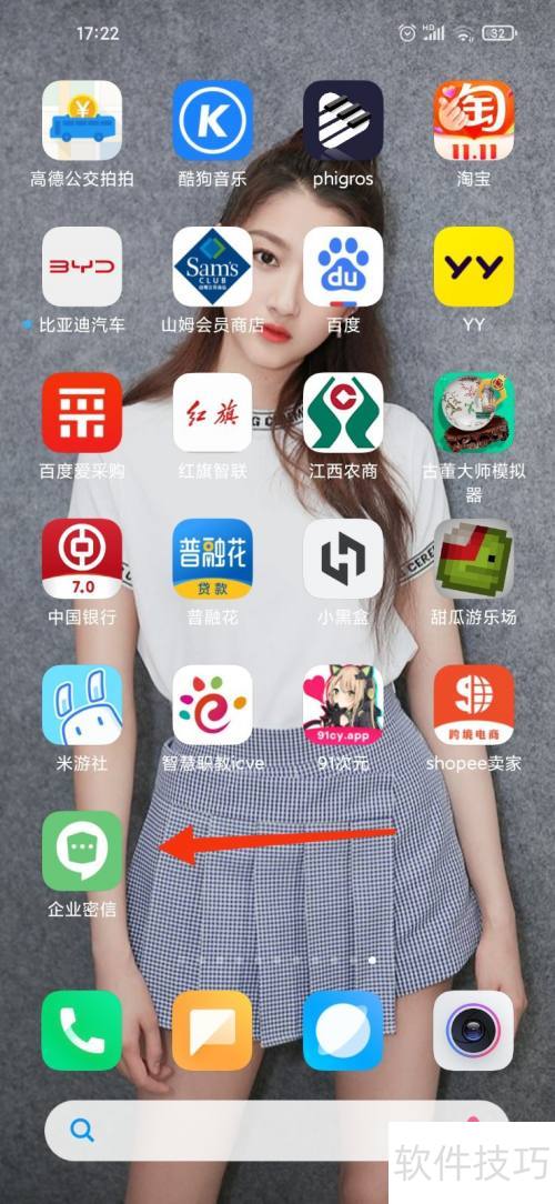 1、 打开手机,参照下图,找到企业密信应用。