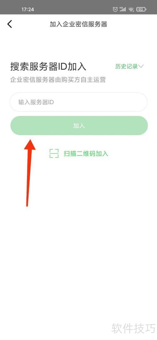 3、 点击加入企业密信,输入服务器ID后点击确认,按照下图提示操作,即可完成注册。