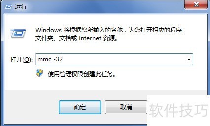2、 在命令输入框中,输入mmc -32(注意 mmc 和 - 间有空格),随后打开控制台根节点。