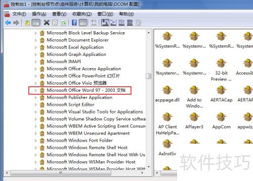 7、 在DCOM配置中,拉动下拉滚动条,查找Microsoft Office Word 97 - 2003文档或者标识为{00020906-0000-0000-C000-000000000046}的选项内容。