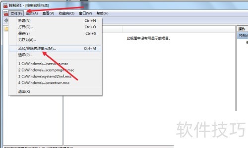3、 在控制台中,单击文件下的添加/删除管理单元。