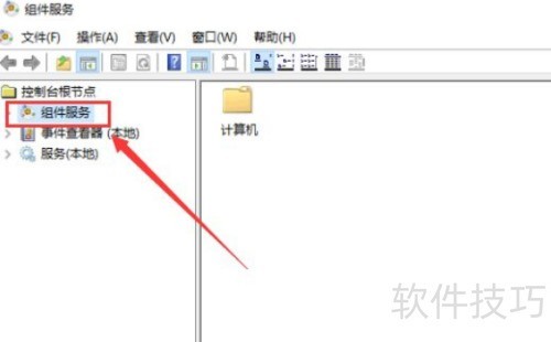 2、 第二步:在弹出的窗口中,打开控制台根节点下的组件服务选项。
