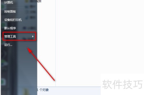 2、 在开始菜单里找到并点击管理工具选项。