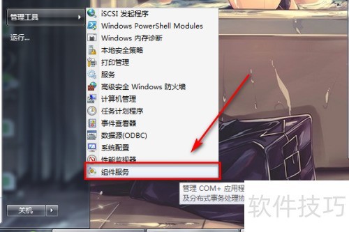 3、 在管理工具菜单中,找到并点击组件服务选项。
