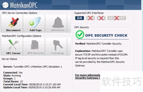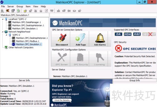 7、 在本地环境中,选取并连接至Tunneller:OPC-1:Matrikon.OPC.Simulation.1,确保配置正确无误,以便顺利进行后续操作。