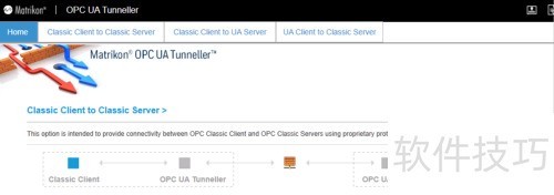 2、 在两台PC上分别启动MatrikonOPC UA Tunneller配置面板,选择Classic Client to Classic Server选项,进入相应配置界面。确保每台电脑上的设置正确无误,以便后续操作顺利进行。此步骤旨在建立经典客户端与服务器之间的连接通道。