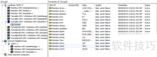 9、 在Localhost的Network Neighborhood中,通过DCOM管理连接至OPC-1的同一服务器。接着创建一个标签组,并将该服务器中的所有Random数据项添加到此组中。