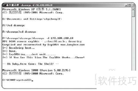 20、 此时可利用DCOMRPC溢出工具实施溢出攻击,针对未妥善修补的系统,成功率极高,所示。