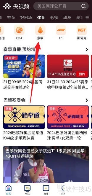 2、 进入体育主页,点击界面上方的【意甲】选项。