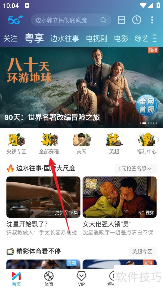 2、 点击体育主页上的【赛程中心】作为第二步。